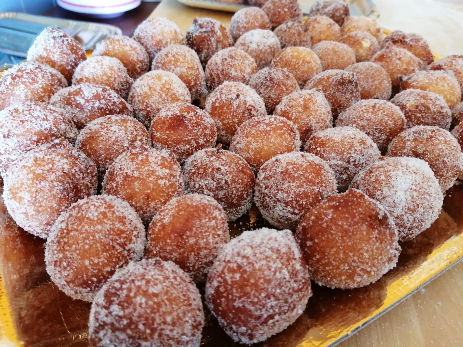 In una ciotola mescolate le uova, lo zucchero semolato e la buccia grattugiata di arancia. Aggiungete il mascarpone ed il succo d’arancia, infine la farina ed il lievito per dolci. Mescolate fino ad ottenere un composto omogeneo, non troppo liquido ma neanche troppo solido. Aggiungete l’olio di semi di arachidi in una pentola piccola dai bordi alti e fondo spesso. Quando sarà caldo prendete l’impasto con due cucchiaini e tuffatelo nell’olio che non deve essere troppo caldo altrimenti si bruciano subito e non si cuociono bene all’interno. Friggere sempre 4-5 frittelle al mascarpone alla volta. Quando saranno dorate versate su carta assorbente. Passare poi ogni frittella nello zucchero semolato.