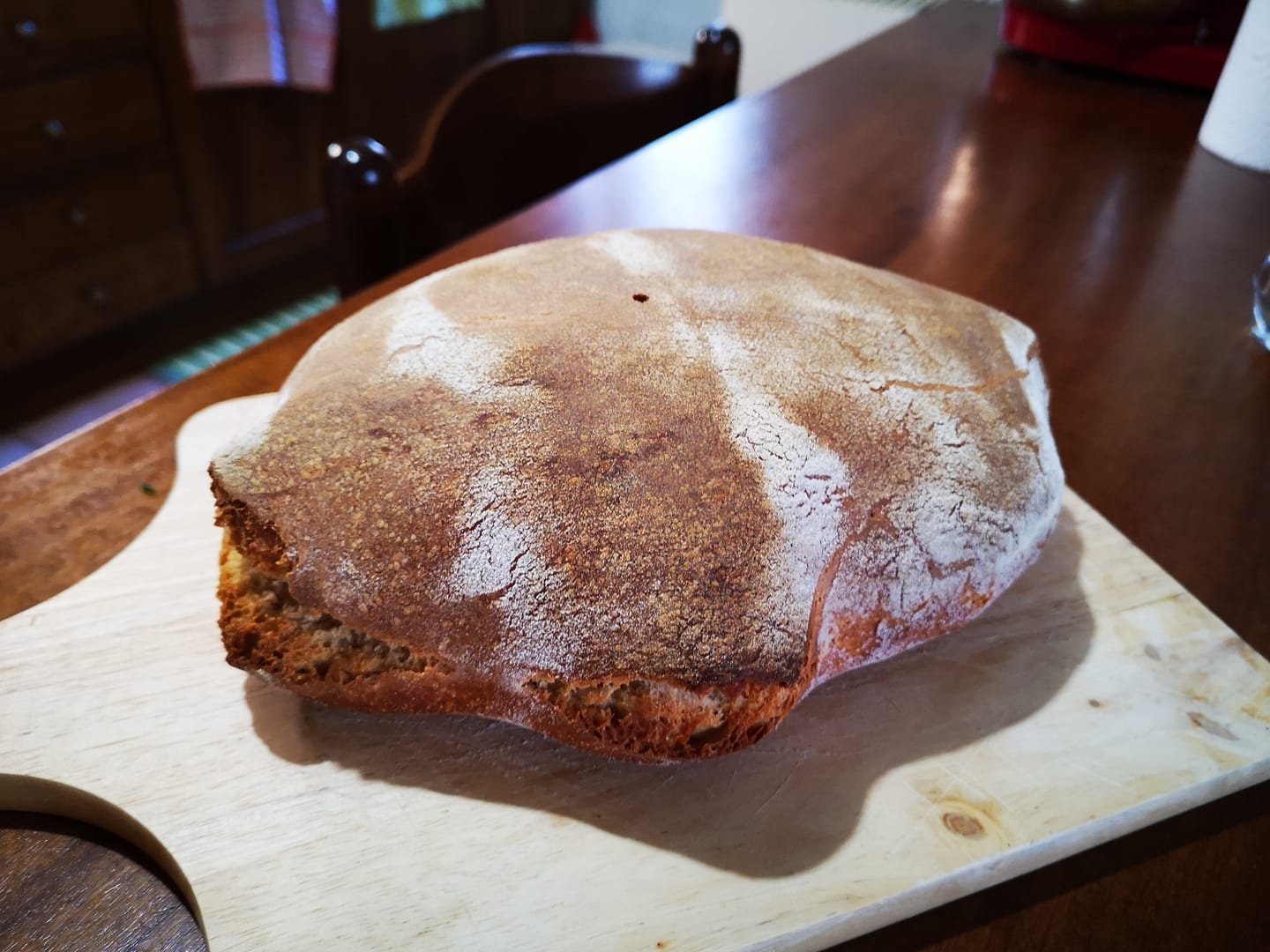 Mettere la farina in un recipiente, aggiungere 300gr di acqua e tutto il lievito, iniziamo ad impastare con un mestolo grossolanamente, dopodichè lasciamo riposare per 30 minuti. Riprendiamo l’impasto ed aggiungiamo il sale e la restante acqua a filo aiutandoti con i pugni a portare l’impasto verso il centro con un movimento del pugno dal basso verso l’alto e poi con forza al centro dell’impasto. Ogni volta che l’impasto assorbe inserire altra acqua, infine aggiungiamo l’olio. L’operazione deve durare 20 minuti circa, non preoccupatevi se l’impasto risulta morbido, non dovete aggiungere altra farina, lasciare riposare altr 30 minuti (il tempo necessario per far formare il glutine), cominciamo, dopo esser trascorso il tempo (mezz0ora) a fare una piega a 4 (tipo falzoletto) per 3 volte, porre l impasto con la parte liscia superiore in un contenitore del volume pari a 3 volte l’impasto. Dopo 1 ora porre in frigo per 18 ore. Passate le 18 ore sgonfiare l’impasto per dare forma al pane schiacciando l’impasto formando un rettangolo, su un piano leggermente infarinato, piegare a 4 (tipo falzoletto) 2 volte e formare un filone oppure una pagnotta tonda, lasciare lievitare in un canovaccio infarinato per 2 ore. Dopo le 2 ore capovolgere su una teglia coperta da cartaforno ed infornare in forno preriscaldato a 170 gradi per 25/30 minuti circa, a seconda del forno fino a doratura.