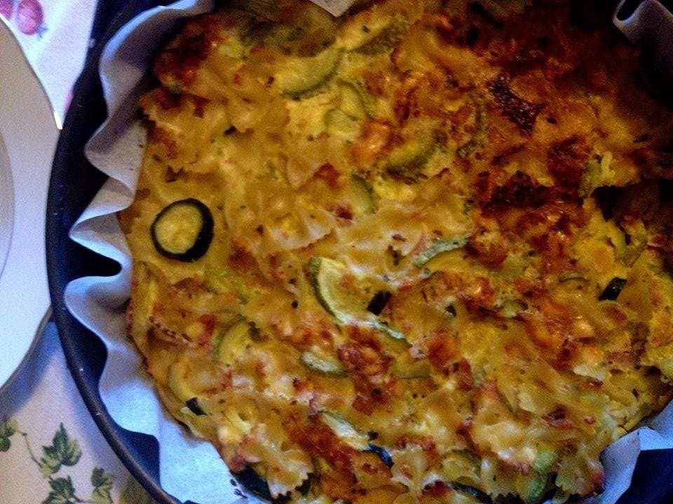 Tagliare il prosciutto a listarelle e le zucchine a cubetti, mettere in una padella antiaderente due cucchiai di olio, aggiungere il prosciutto e far soffriggere, aggiungere le zucchine e cuocere per 20-25 minuti a fuoco basso, alla fine aggiungere il prezzemolo. Cuocere la pasta al dente, scolarla e versarla nella padella con le zucchine e il prosciutto e il resto dell’olio (altri 2 cucchiai), aggiungere la ricotta, il parmigiano circa 70 gr, la caciotta, mescolare il tutto, amalgamare bene e per ultima cosa aggiungere le uova. Distribuire in una teglia da forno e spolverizzare con il resto del parmigiano e cuocere per 20 -30 minuti a 180 gradi in forno ventilato già preriscaldato, togliere quando si sarà formata una bella crosticina.