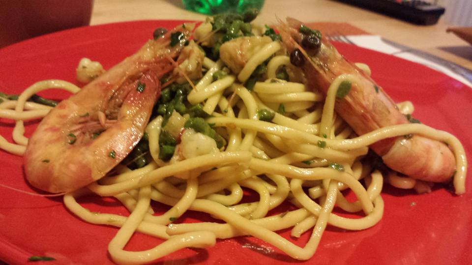 Cominciamo mettendo la farina di grano duro in una ciotola, aggiungiamo piano piano l’acqua tiepida fino a formare un impasto asciutto, mettiamo in frigo per 30 minuti coperto con pellicola. Stendiamo l’impasto e formiamo i tonnarelli con l’apposita “chitarra”. Laviamo e mondiamo gli Asparagi mettendo da parte i gambi più duri, mentre dividiamo le teste delle mazzancolle lasciandone 3 o 4 intere per guarnire il piatto. In un pentolino mettiamo i gambi inutilizzati e le teste con i carapaci delle mazzancolle, riempiamo di acqua e lasciamo formare il “fumetto” per 30 minuti. Filtriamo e mettiamo da parte, ci servirà per cuocere e dar sapore agli asparagi ed al piatto in generale. Dividiamo le punte degli asparagi e facciamo a rondelle i “gambi”, in una padella facciamo rosolare leggermente l’aglio con l’olio, togliamolo inserendo all’interno le rondelle di asparago, salare e sbriciolare il peperoncino, facciamo “steccare” un minuto ed aggiungiamo un po’ di brodo precedentemente messo da parte, cuociamo per circa 10 minuti a fuoco basso, a questo punto aggiungiamo le punte degli asparagi e le mazzancolle con un altro po’ di brodo, lasciamo cuocere 5 minuti sempre a fuoco basso e sfumiamo con un bicchierino di brandy alzando la fiamma, appena sfumato spegniamo ed aggiungiamo un po’ di prezzemolo se piace. Cuociamo i tonnarelli in acqua salata in ebollizione, scoliamo al dente nella padella a fuoco alto e facciamo mantecare bene il tutto. Impiattare con prezzemolo fresco tritato.